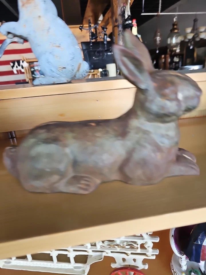 Antique Cast Iron Patina Double-Sided BUNNY RABBIT Doorstop / Garden Decoration